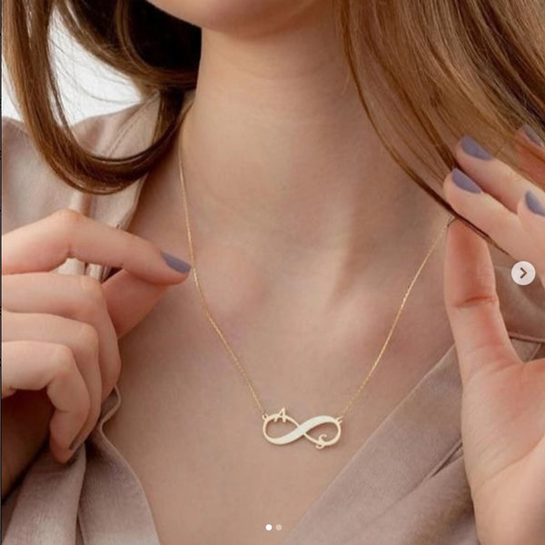 Ce collier exclusif en Or 18 carats symbolise l'éternité et la connexion intemporelle avec ces 2 lettres initiales entrelacées à l'infini. Fabriqué avec soin, il offre une touche de luxe à votre style. Offrez-le pour exprimer un amour pour toujours ou simplement pour son élégance et son raffinement.