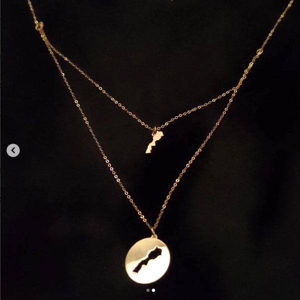 Ce double collier du Royaume du Maroc en Or 18 carats offre une élégance royale à votre look. Fabriqué en or 18 carats, il rayonne avec une beauté intemporelle. Portez-le pour ajouter une touche de luxe à votre tenue. Faites ressortir votre côté royal avec ce magnifique collier.