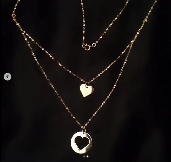 Ce double collier en forme de cœur sortant d'un médaillon est un bijou exclusif et sophistiqué. Personnalisez-le avec une lettre initiale gravée sur le cœur rempli en Or 18 carats pour un look élégant et personnalisé. Montrez votre amour avec ce collier unique en son genre.